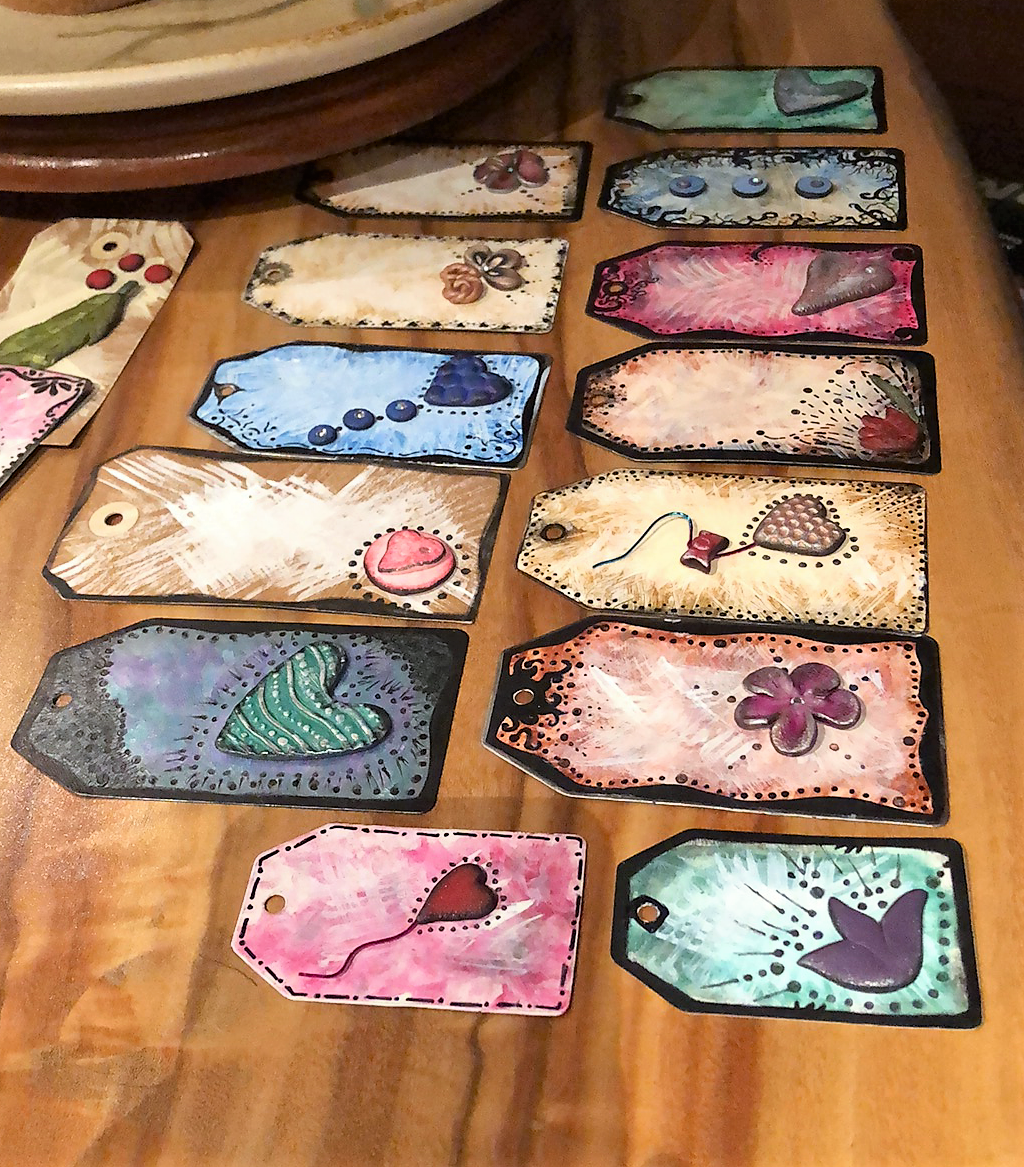 My focus moved from the medium of polymer clay to using gift tags and cards.